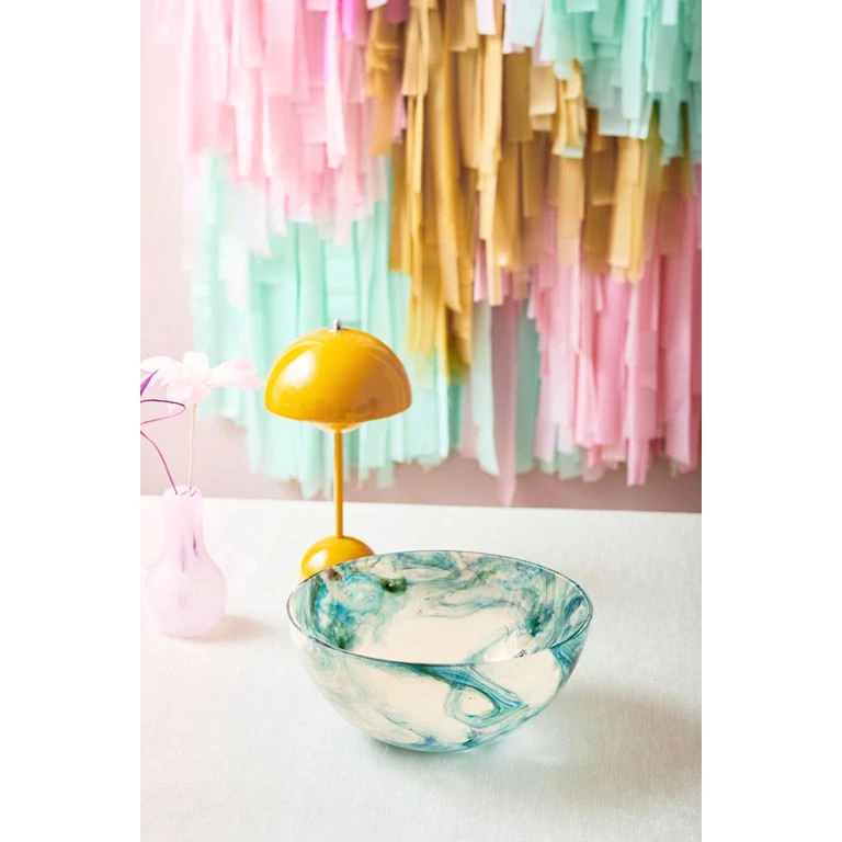 Da glasset er mundblæst, kan små luftbobler forekomme. Desuden vil mønsteret variere fra skål til skål, hvilket er en del af det unikke og charmen ved mundblæst glas.