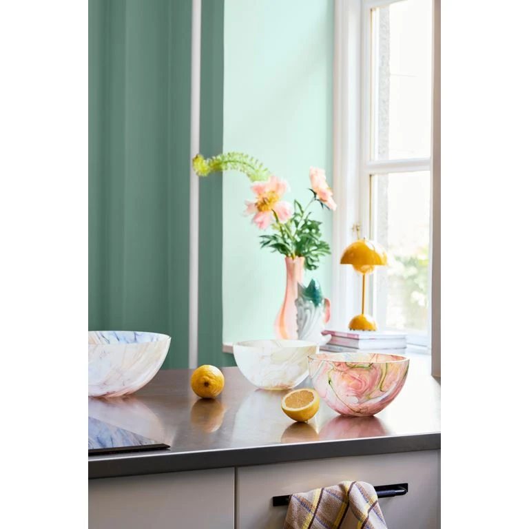 Da glasset er mundblæst, kan små luftbobler forekomme. Desuden vil mønsteret variere fra skål til skål, hvilket er en del af det unikke og charmen ved mundblæst glas.