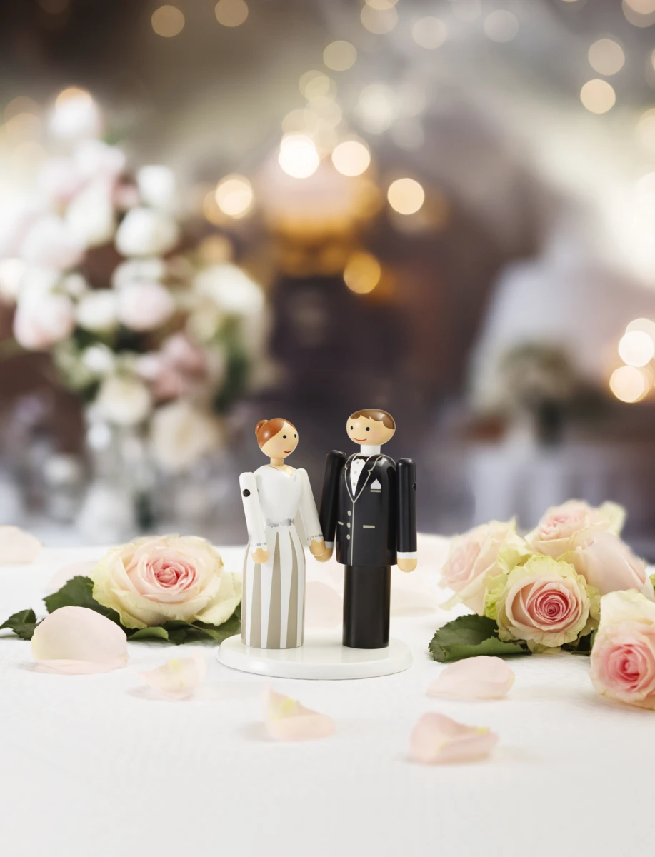 Denne charmerende brudgom fra Kay Bojesen er en smuk træfigur, der tilføjer et stilfuldt element til dit hjem eller din bryllupskage. Figuren er lavet af FSC®-certificeret bøgetræ og er omhyggeligt malet for at sikre, at hver enkelt detalje fremstår med præcision og elegance. Med sine mål på 12 cm i højden, 3,5 cm i dybden og 6 cm i bredden, er denne miniudgave af den originale brudgom en perfekt størrelse til at passe ind i ethvert interiør eller som en unik topfigur på din bryllupskage.