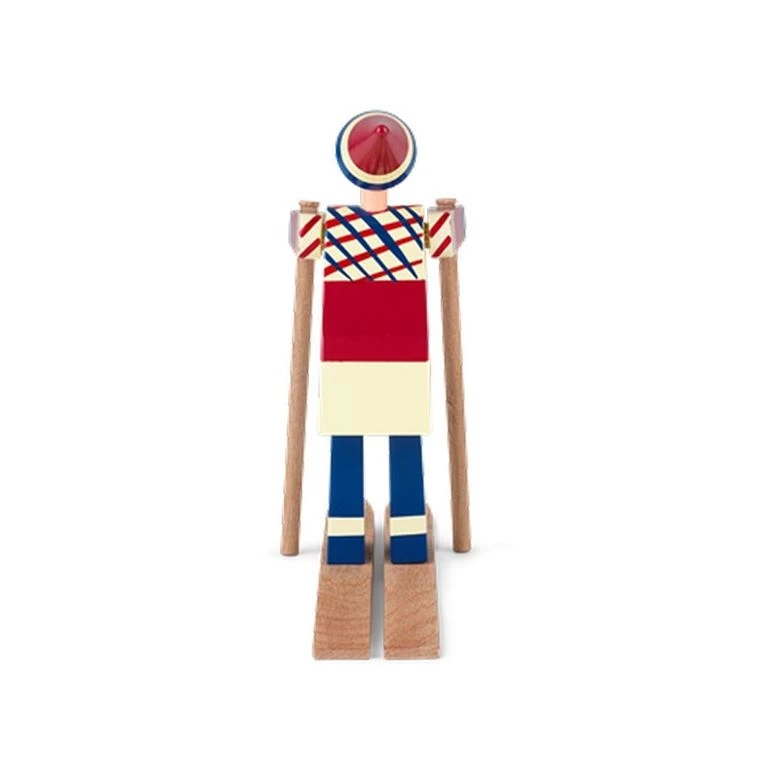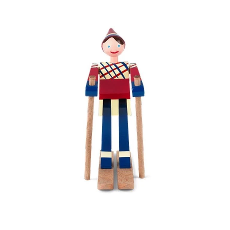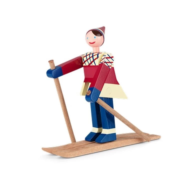 Figur i malet træ fra Kay Bojesen. Skiløberpigen er navngivet Datti, der var kælenavnet for Kay Bojesens svigerinde Ruth. Skiløberen fås også i en drengeudgave, der er navngivet Boje, hvilket var kælenavn for Kay Bojesens søn Otto.
