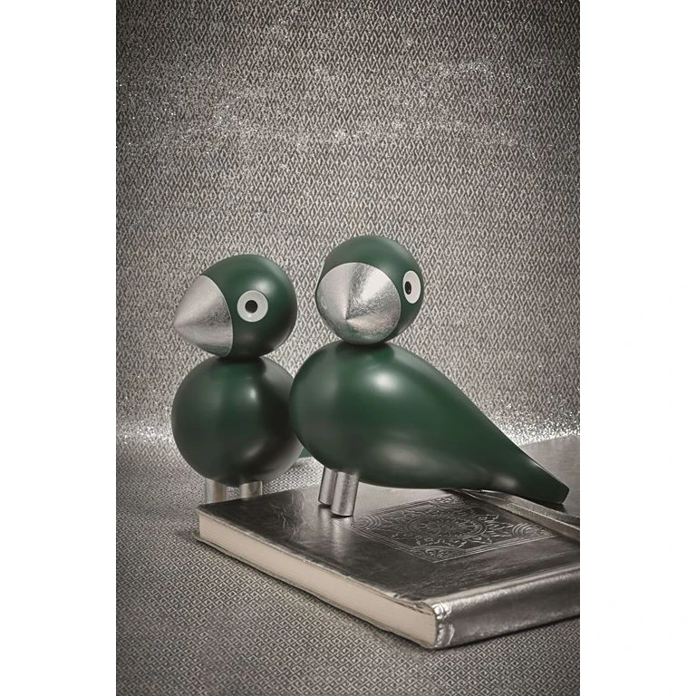Sangfuglen Georg er en hyldest til Kay Bojesens læretid som sølvsmed hos Georg Jensen. Den grønne farve og de fine sølv detaljer er inspireret af sølvsmykker fra denne tid og passer super fint med de andre sangfugle fra Kay Bojesen.