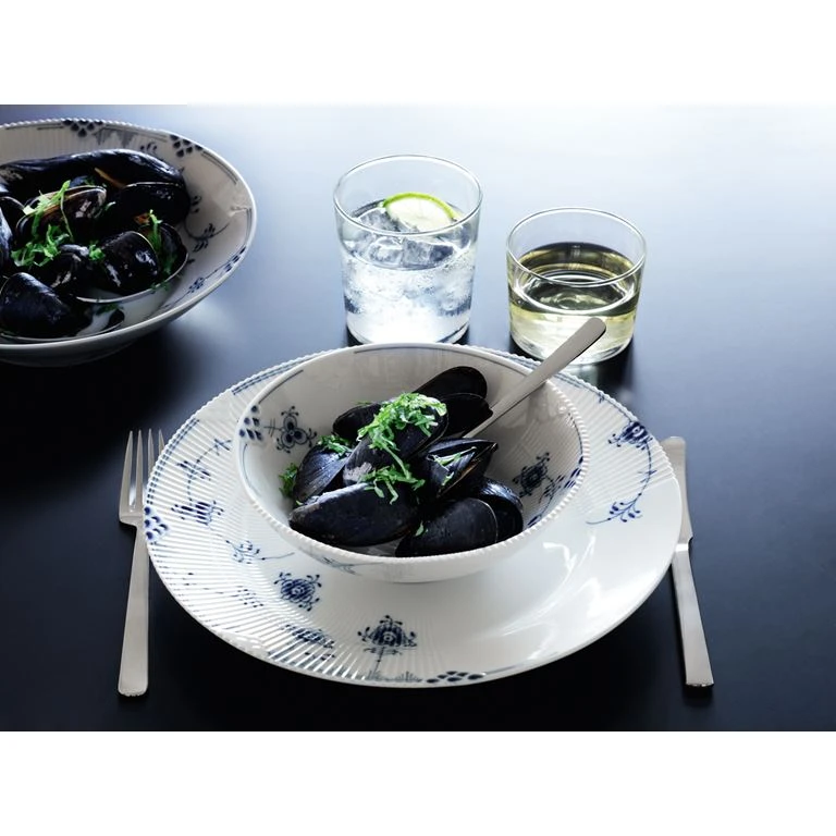 Blå Elements er opstået af Hvid og Multifarvet Elements og blomstrer med inspirerende nye dekorationer i den noble kongelige blå farve. Resultatet er skønhed – enten alene eller kombineret med Hvid Elements. Stellet kan få et endnu mere legende og moderne udtryk, hvis det kombineres med den traditionelle Musselmalede kollektion.