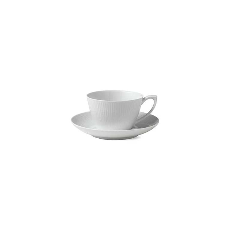 Udtrykket er enkelt, linjerne elegante og formen klassisk. Hvid Riflet udstråler en speciel moderne renhed, som skandinavisk design er berømt for i hele verden. Hvid Riflet giver borddækningen et rent og stilfuldt udtryk, og stellet kan bruges både til hverdag og fest. I 2004 blev Hvid Riflet introduceret, men selve stellets grundform er flere generationer gammelt. Hvid Riflet er egentlig grundformen bag flere af de andre stel – bl.a. Musselmalet Riflet og Musselmalet Mega, som stammer helt tilbage fra det 19. århundrede. Den riflede form stammer oprindeligt fra det klassiske Musselmalet Riflet, som fik sit navn efter muslingens riflede skal. Den dag i dag bliver en del af stellet stadig fremstillet ved håndkraft blandt andet støbningen, påsætning af hanke og glasering. Hvid Riflet er i øvrigt skabt efter de samme gamle forfinede håndværkstraditioner, som startede for mere end 200 år siden, da Royal Copenhagen blev grundlagt. Designeren er Arnold Krog.